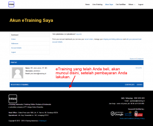 Setelah melakukan pembayaran, maka Anda bisa mengakses materi eTraining yang telah Anda pesan. Anda hanya perlu klik tombol “Akun Saya”, lalu scroll kebawah, dan klik pada topik eTraining yang telah aktif.